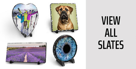 Print a unique and personalized gift by printing a favourite photo on the small heart shaped natural black Photo Slate 14cm x 14cm. The matte white polymer coated surface allows for vibrant and long-lasting dye sublimation printing.